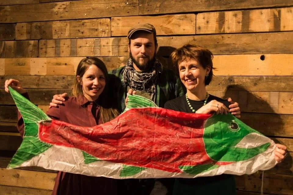 Inspired by Martin Lee Mueller’s award-winning book of the same name, and drawing on salmon stories from Sami and First Nations peoples of Scandinavia and North America, the performance takes us on a journey through the extraordinary lives of wild salmon - sentient beings who are born in rivers, traverse the oceans, and return towards the end of their lives to their birth rivers to spawn and gift forward more life. The performance explores what becomes of this awe-inspiring creature and her journey in the face of an expansive, profit-driven feedlot industry.